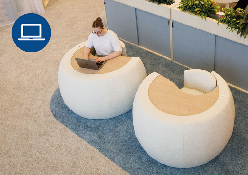Die Alternative zum Arbeitsplatz ist rund. Die Work Lounge spricht emotional an und lädt ein. Ergonomisch, funktional und trotzdem fancy.