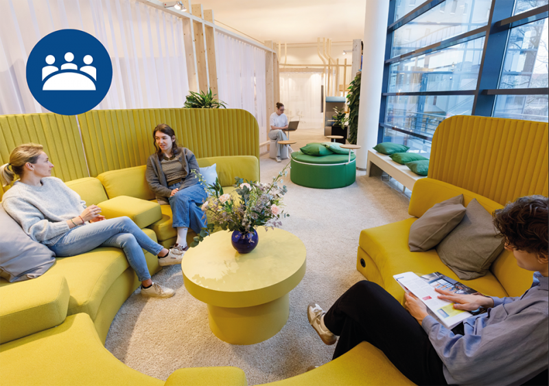 Collabaration, Rückzug oder ReCreation stehen euch jederzeit zur Verfügung. Und für den vertraulichen Teams-Call oder eine Stunde konzentrierter Arbeit bucht vorab einfach einen unserer Arbeitsplätze oder die hybride Meeting-Lösung.